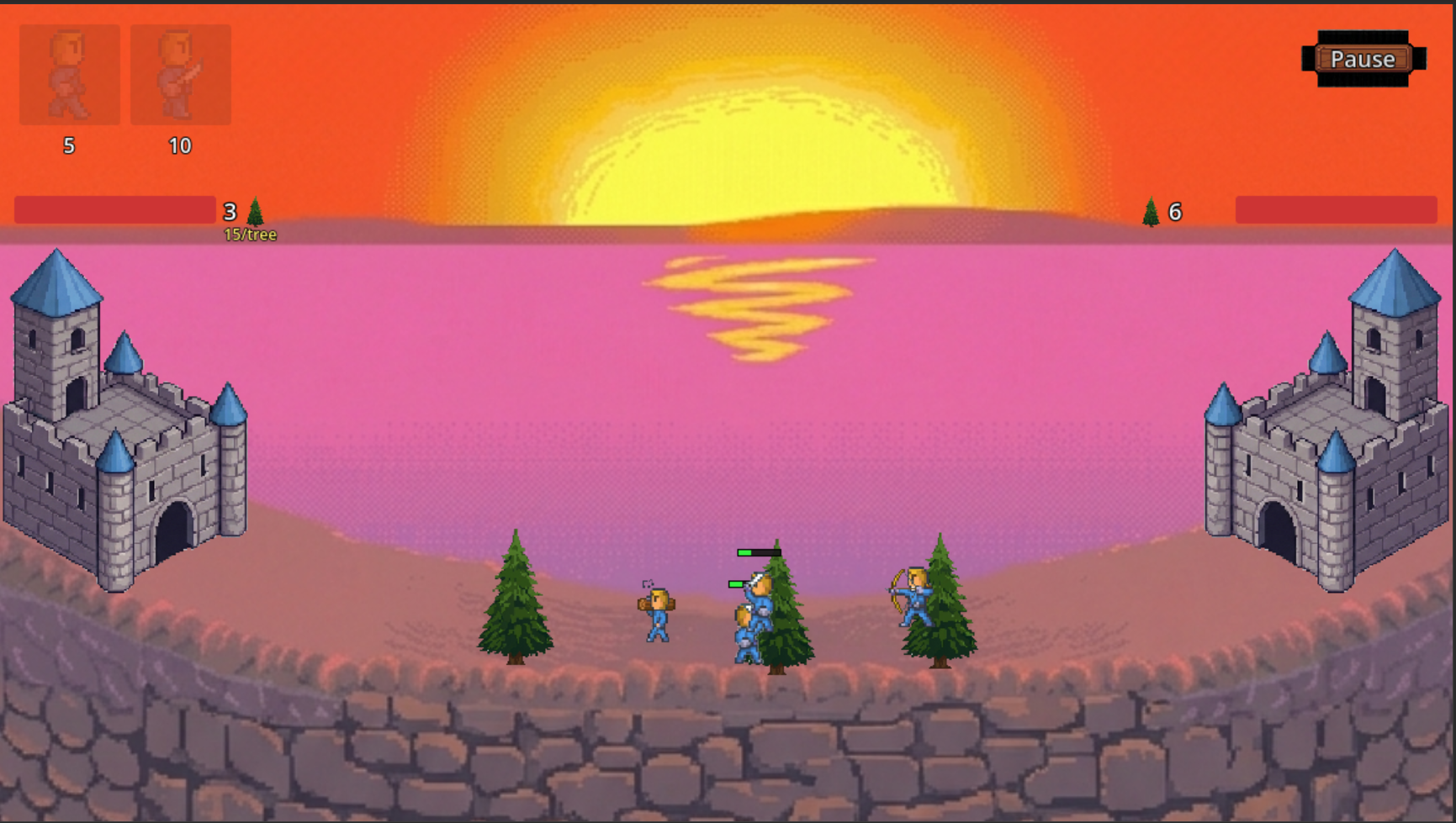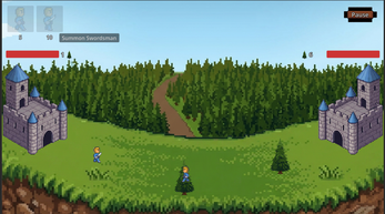 Two castles; you’re on left, enemy on right.